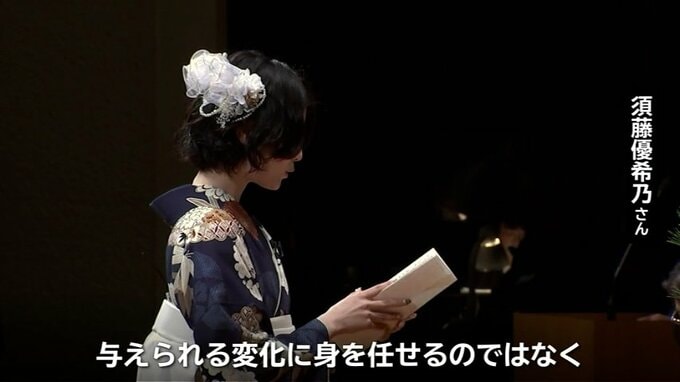 そして、卒業生を代表して人文社会科学部の須藤優希乃さんが学生生活を振り返り新生活への決意を述べました。