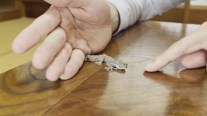 「ヤモリではあろうかなとは思うけど、普通後ろにはしっぽがないといけないですよね。もともとヤモリは苦手で、珍しさが先立ちまして捕獲はしたんですけど、かわいいところはあるけど…やっぱり苦手です」