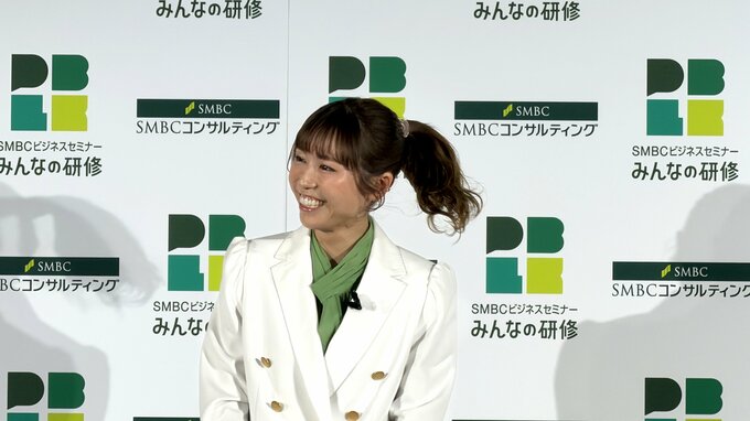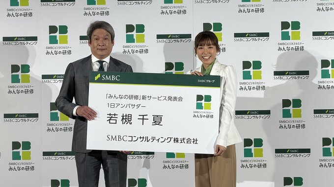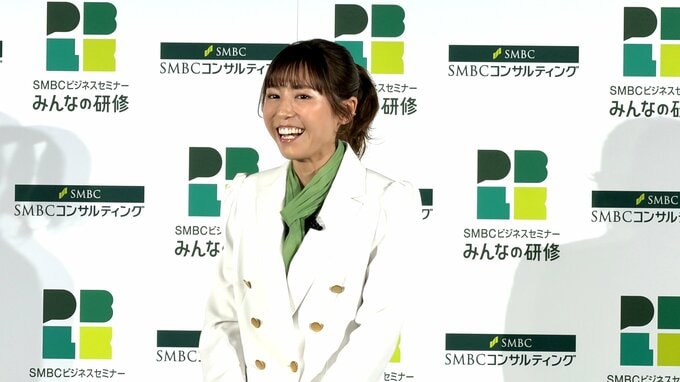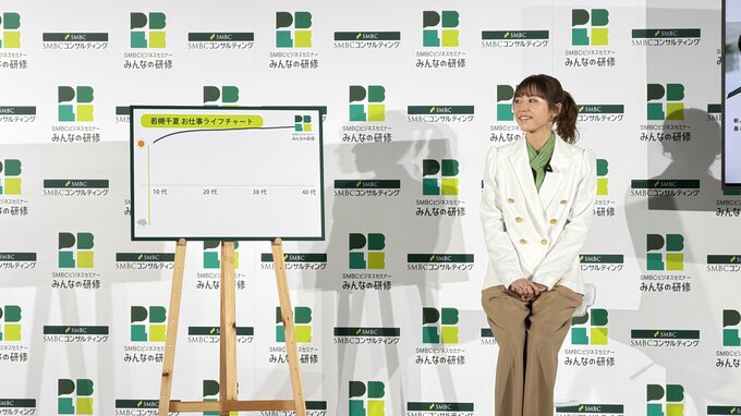 タレントの若槻千夏さんが23日、SMBCビジネスセミナー「みんなの研修」新サービス発表会に登壇しました。