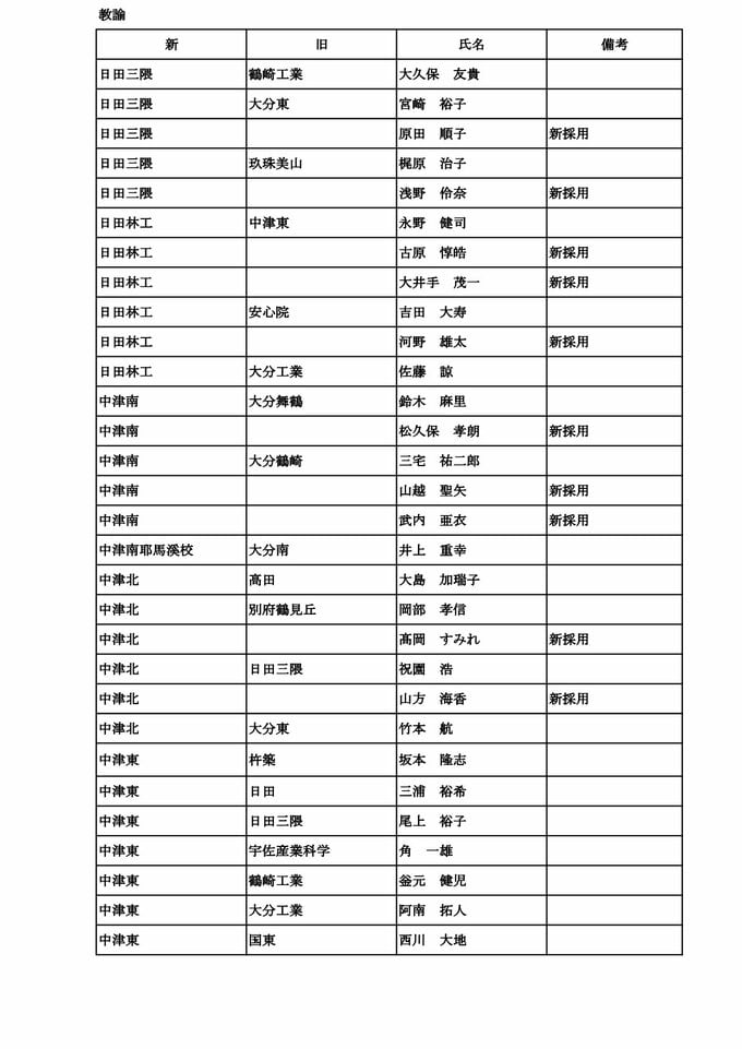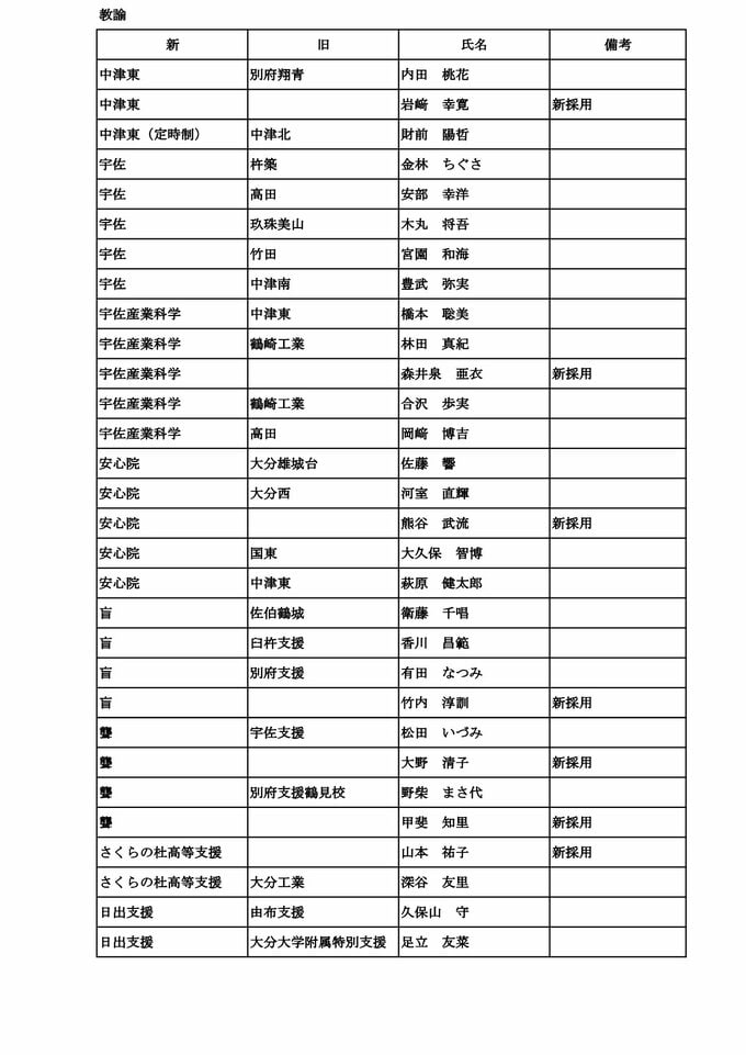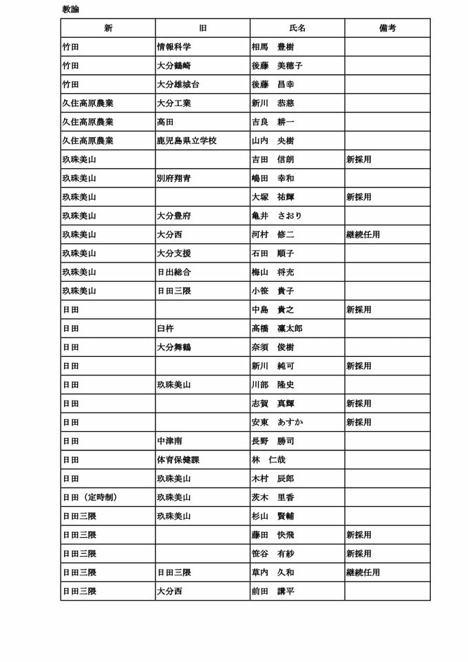 大分県教職員人事異動2026【一般職員】県立中学校・高校・特別支援学校「あの先生、かわるん?」【名簿一覧掲載】