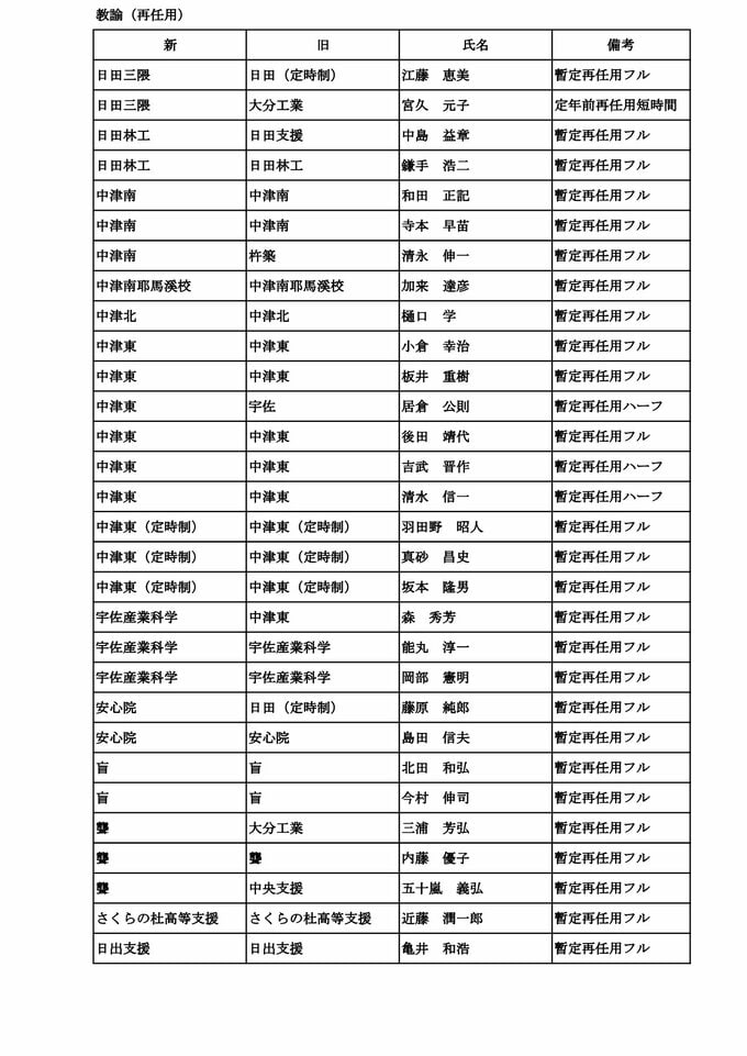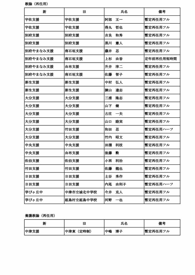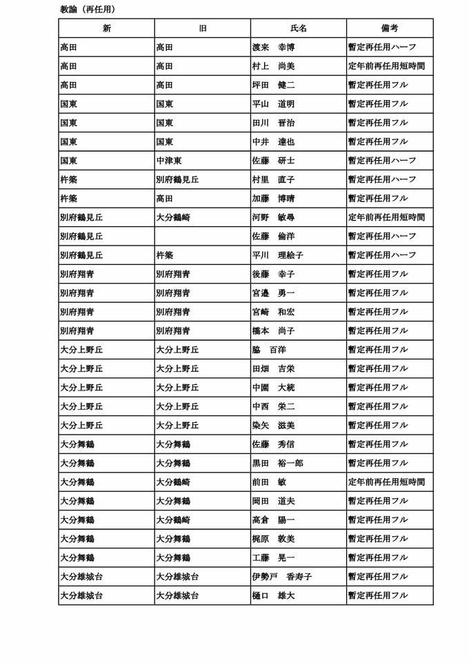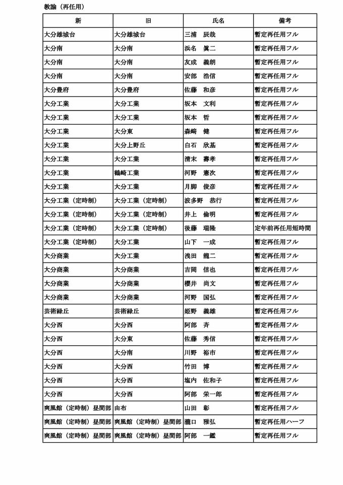 大分県教職員人事異動2026【一般職員】県立中学校・高校・特別支援学校「あの先生、かわるん?」【名簿一覧掲載】