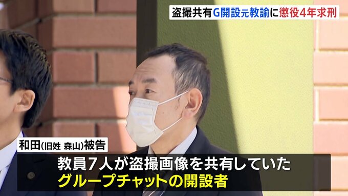 教員グループが盗撮画像を共有していた事件で、グループを開設した名古屋の元小学校教諭に対し、検察が懲役4年を求刑しました。起訴状などによりますと、名古屋市の元小学校教諭・和田(旧姓森山)勇二被告(42)…