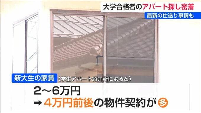 学生アパート紹介所によりますと、新大生の月々の家賃は2万円から高いところで6万円で、4万円前後の物件を契約する人が多いそうです。