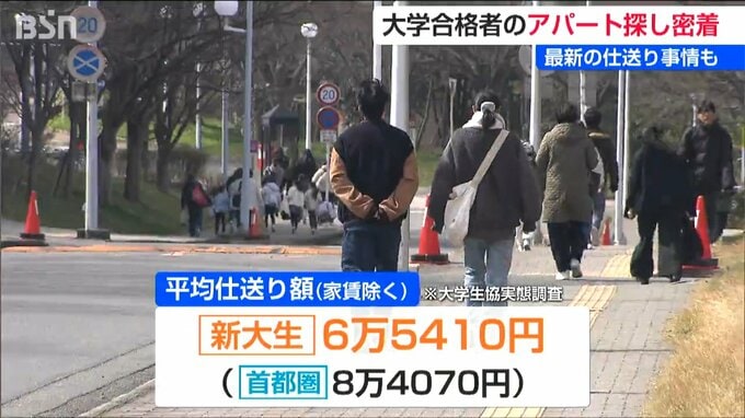 大学生協の調査によりますと、新大生の平均仕送り額は家賃を除いて月々6万5410円。首都圏の平均より1万8000円ほど低くなっていますが、去年の平均より1万6500円ほど増えています。