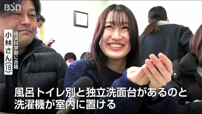 【経済科学部に合格小林さん(18)】「風呂トイレ別と独立洗面台があるのと、洗濯機が室内に置ける」