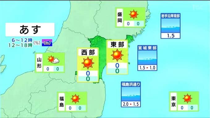 昼過ぎまですっきりと晴れるでしょう。夕方以降は薄い雲が出ますが、雨や雪が降ることはない見込みです。東部では、西寄りの風がやや強く吹くでしょう。