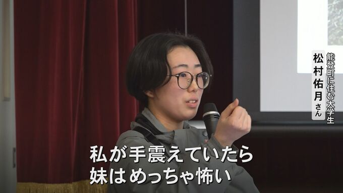 能登町に住む大学生・松村佑月さん「妹がずっと震えてて私が手を握っていたんですね、妹の。私が手震えてたら妹はめっちゃ怖いじゃないですか。一番近くにいる頼れるお姉ちゃんが怖がっている。それはダメだなと思って必死に震えを止めました」