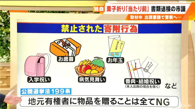 法律自体は単純明快。いたってシンプルなんです。公職選挙法199条。「政治家が地元有権者に物品を贈るのは、寄附行為にあたりすべてNG」なんです。