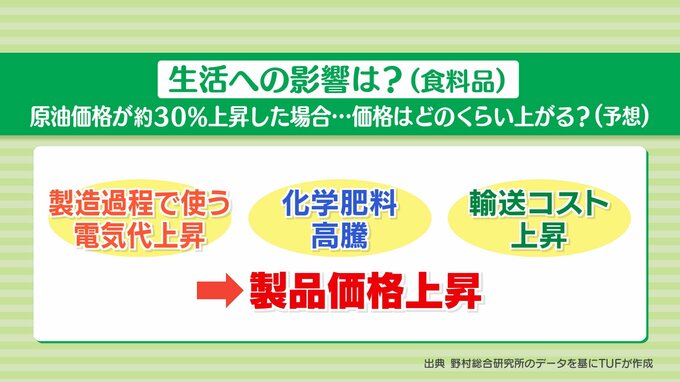 原油から直接作られるものだけでなく、食料品なども、製造過程の影響を受けます。