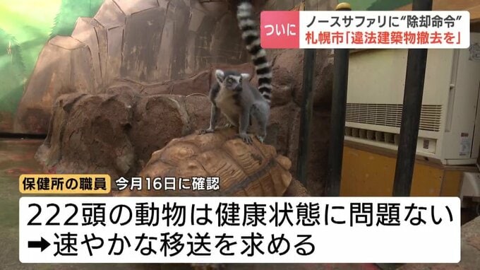 現地で確認した札幌市の保健所によりますと、3月16日の時点で、222頭の動物は健康状態に問題はないとし、速やかな移送を求めています。