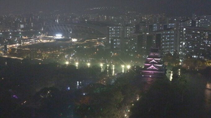 そして夜、「閉城セレモニー」が行われました。琵琶奏者の大野友梨子さんによる「祇園精舎」の旋律が響き渡る中、天守が鮮やかにライトアップされました。