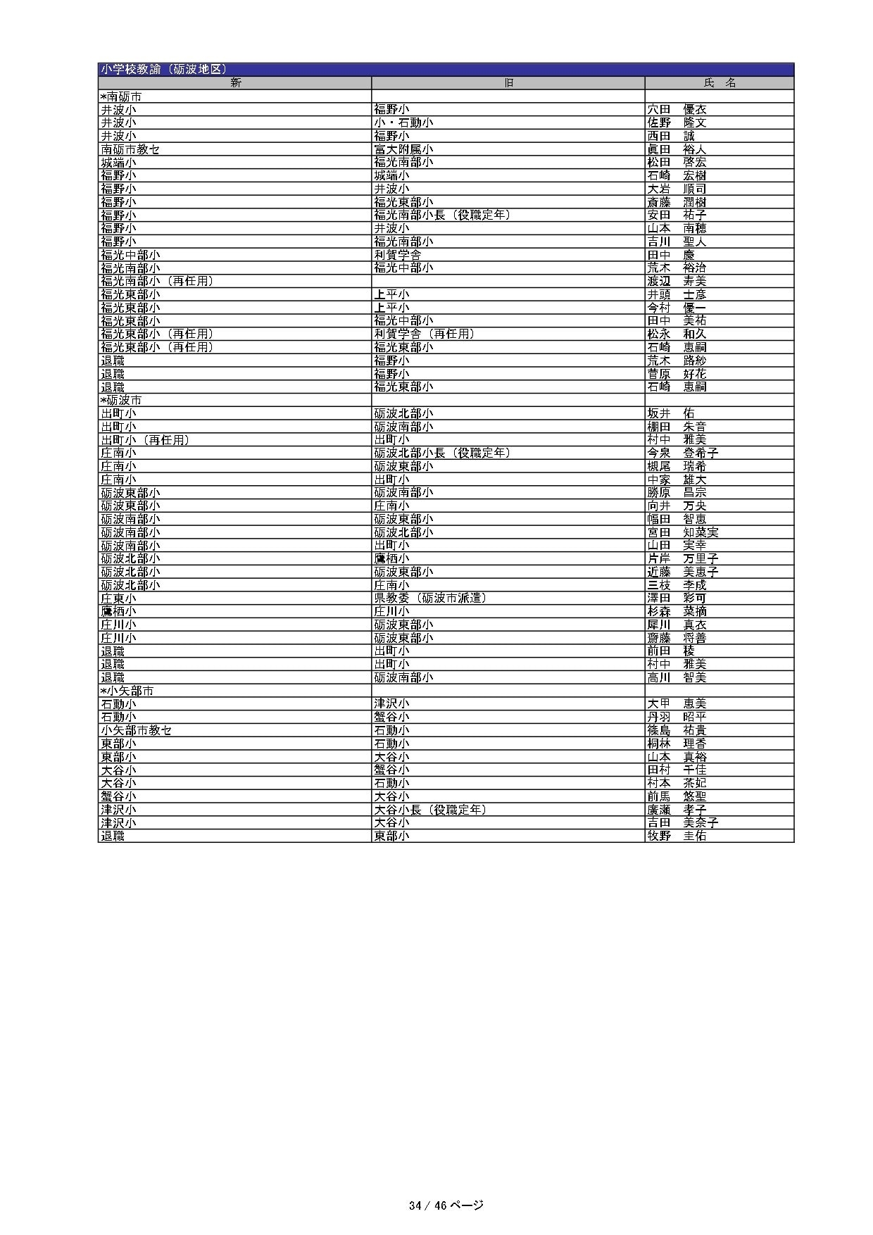 教職員人事異動 2026 富山県「先生どこ行くがけ? 」【事務局・小学校・中学校・高等学校】令和8年・異動一覧【富山県教育委員会】 チューリップテレビ 2026年3月23日(月) 17:00 国内 暮らし・マネー 小学校教諭 異動一覧2026