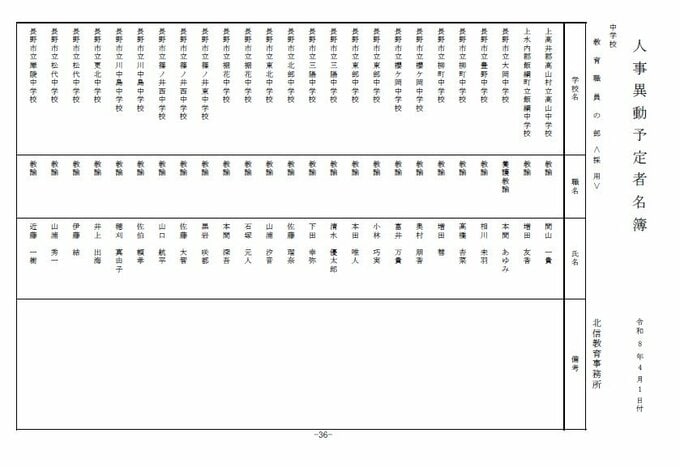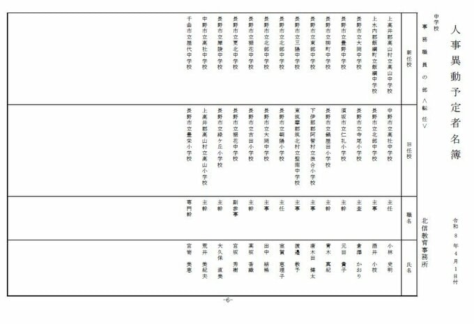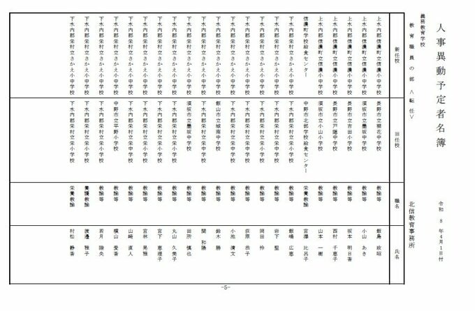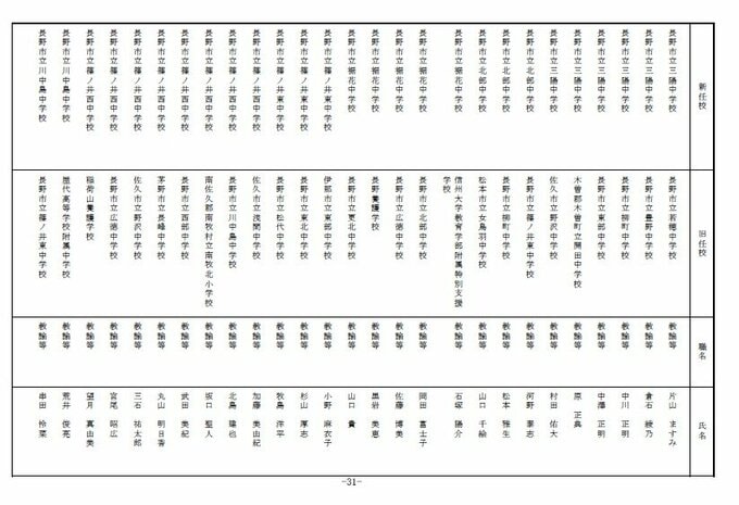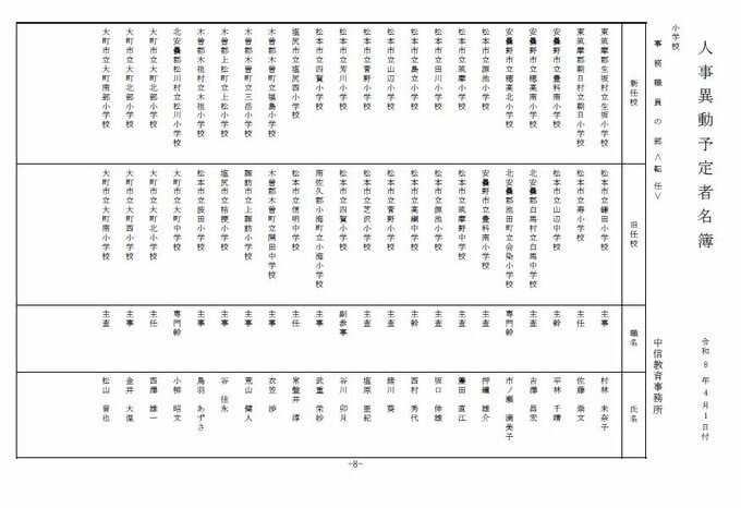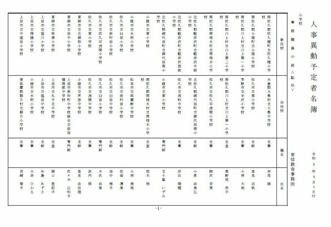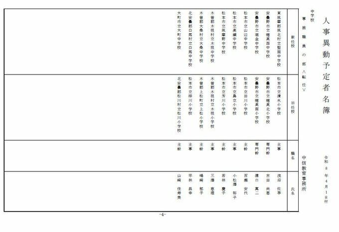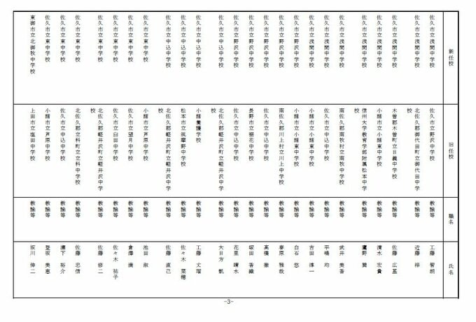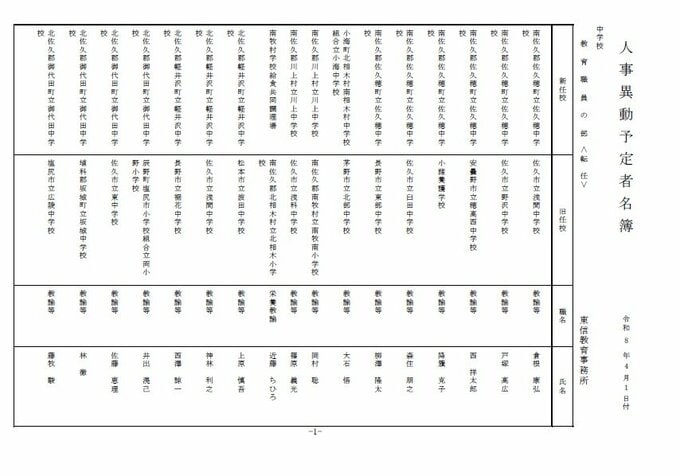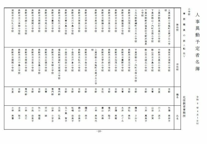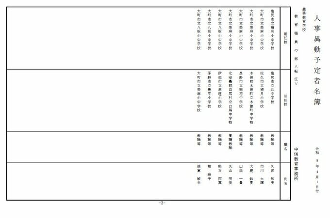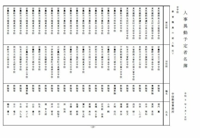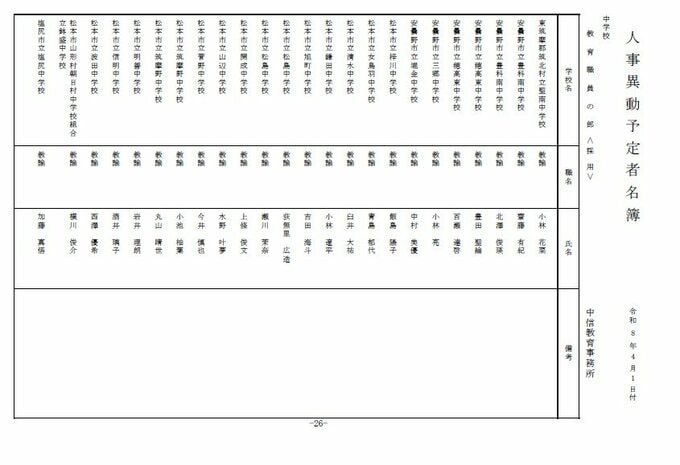 長野県教育委員会は、2026年4月1日付の教職員の第3次の人事異動について発表しました。
