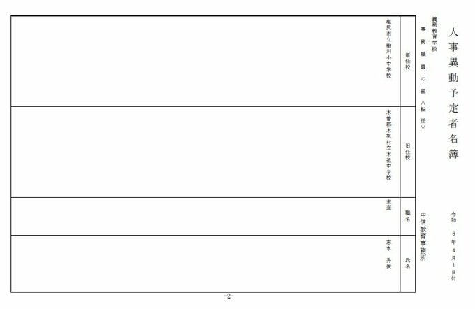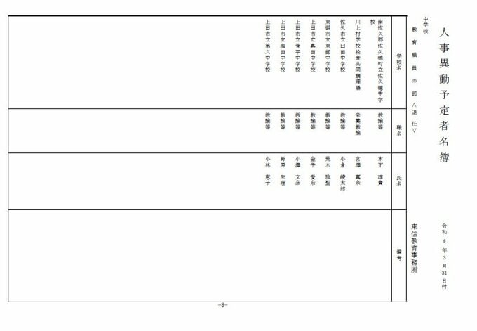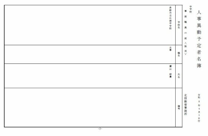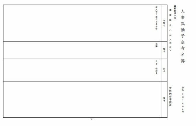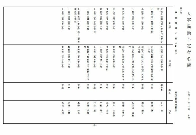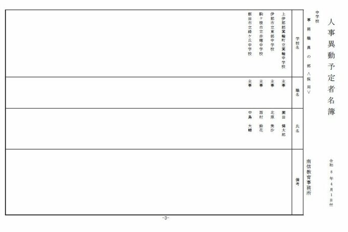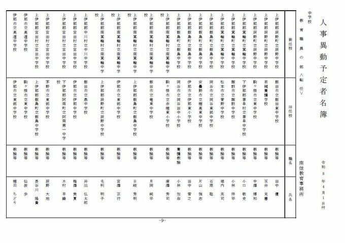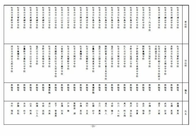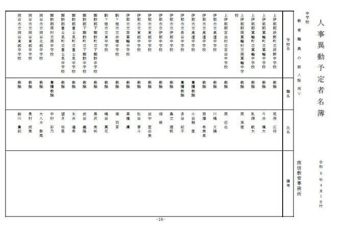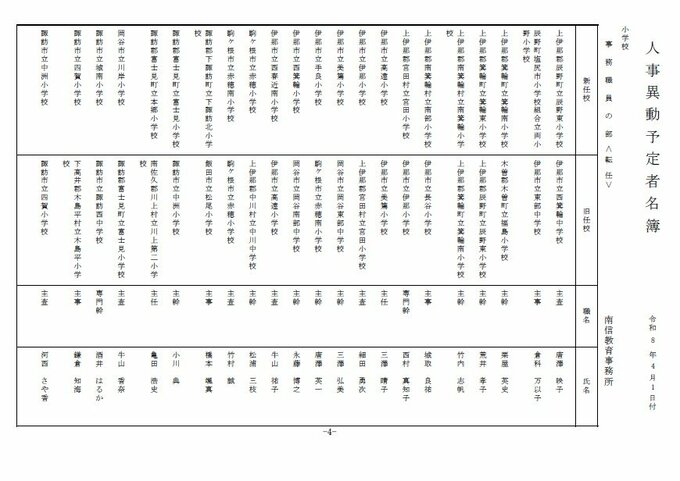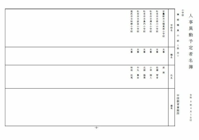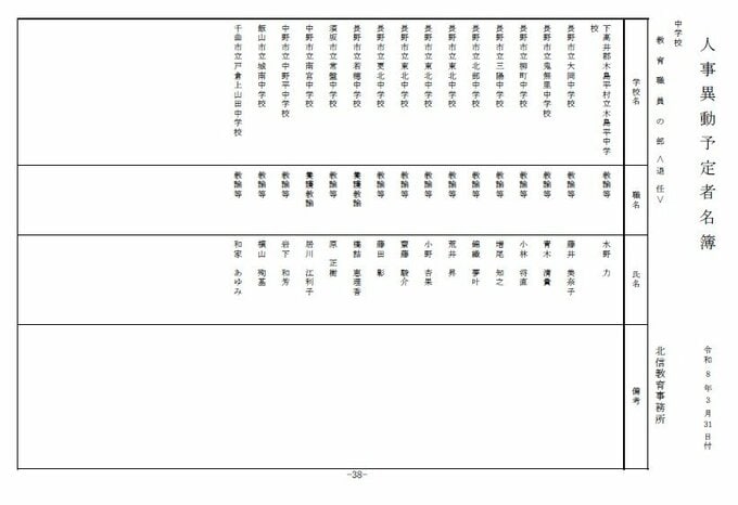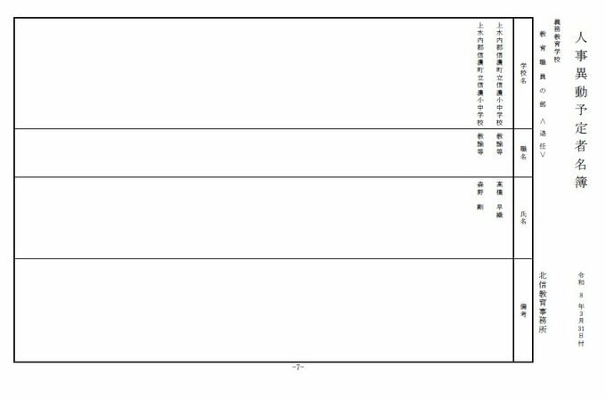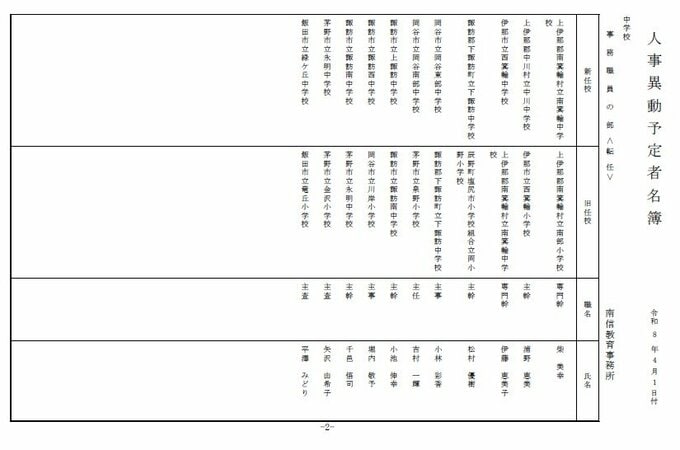 長野県教育委員会は、2026年4月1日付の教職員の第3次の人事異動について発表しました。