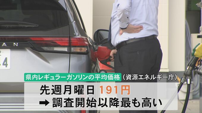急騰するガソリン価格。資源エネルギー庁が発表した16日時点の県内のレギュラーガソリン1リットルあたりの平均価格は191円で、2004年の調査開始以降、最も高くなりました。