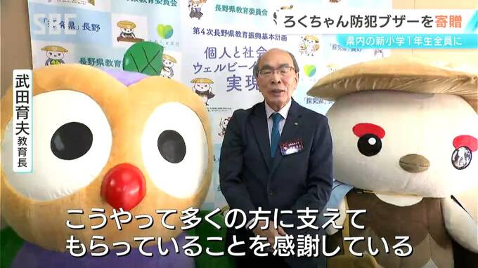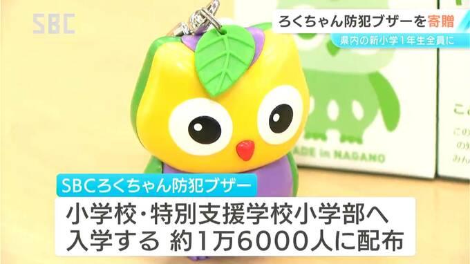 長野県内の小学校などに入学する新1年生全員に、SBCのキャラクター「ろくちゃん」の防犯ブザーが贈られました。
