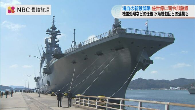 海上自衛隊の組織改編に伴い新設された、機雷の処理などを任務とする「水陸両用戦機雷戦群」の司令部が新たに長崎県佐世保市に設置されることになり、23日に歓迎行事が開かれました。横須賀から佐世保に入港した掃…