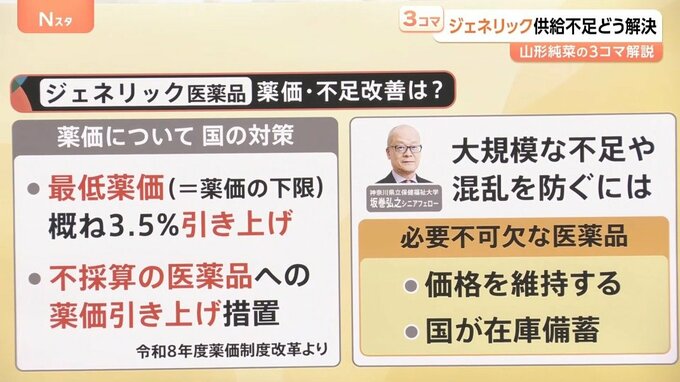 大規模な不足や混乱を防ぐために、坂巻さんは「必要不可欠な医薬品は、薬の価格を維持し、国がある程度の在庫備蓄をしておくことが大事なのではないか」と指摘しています。