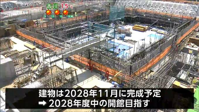 県によりますと、地下の掘削に時間をかけているため、予算ベースの工事の進捗率は3パーセント程度だということです。建物は、2028年11月に完成する予定で、県は2028年度中の開館を目指しています。