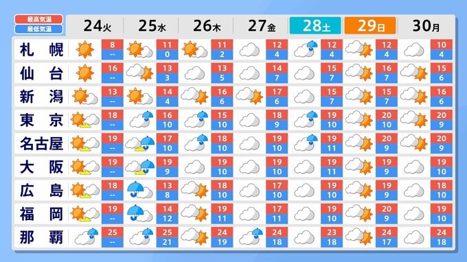 ただ、あす25日には低気圧が発達しながら日本の南を進む見込みで、西日本を中心に大雨となる恐れがありそうです。