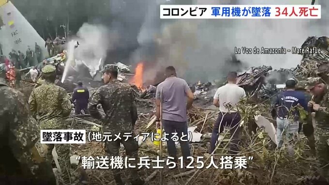 南米コロンビアで125人が乗っていた軍用の輸送機が墜落しました。これまでに少なくとも34人が死亡しています。コロンビア軍は23日、南部のペルー国境付近で輸送機が墜落したと発表しました。地元メディアによりま…