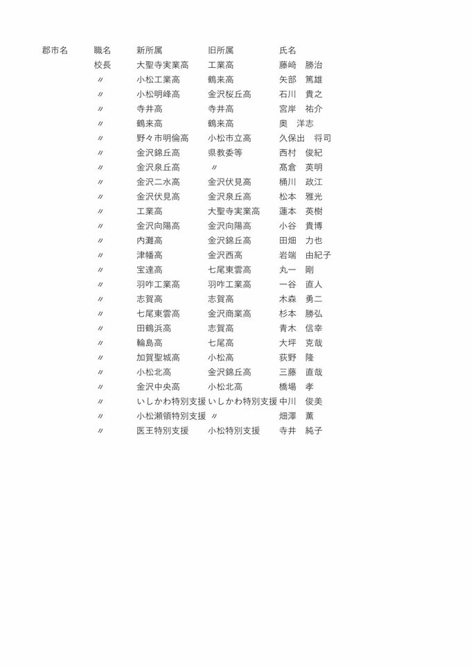 教職員人事異動2026石川県 「あの先生はどこに?」全名簿掲載・令和8年度「小学校・中学校・高校・特別支援学校