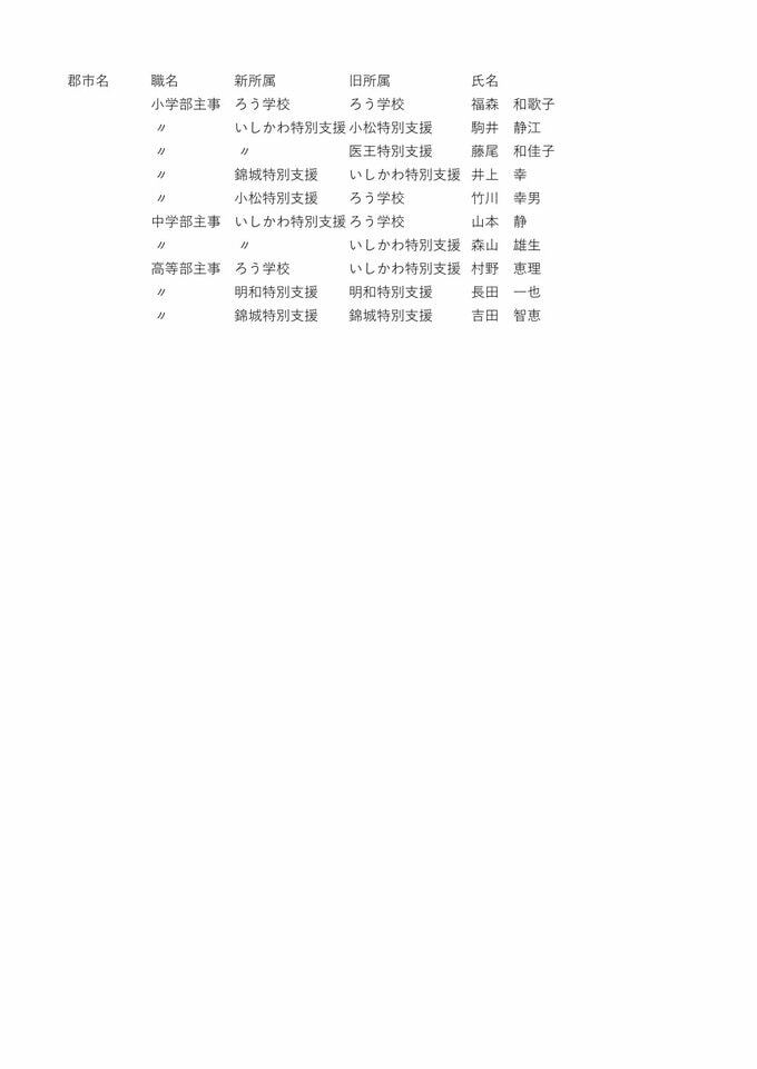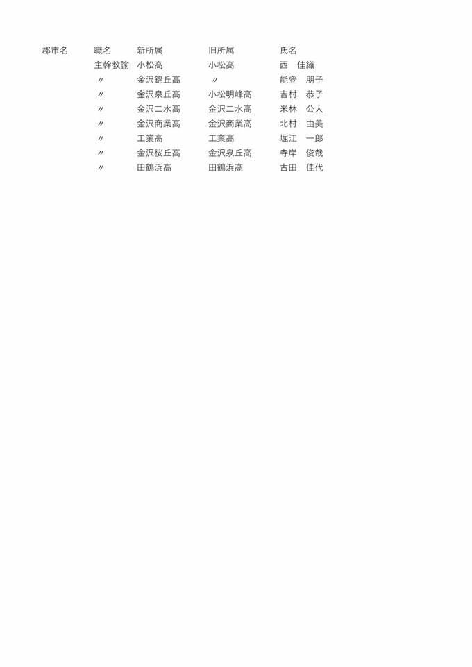 教職員人事異動2026石川県 「あの先生はどこに?」全名簿掲載・令和8年度「小学校・中学校・高校・特別支援学校 北陸放送 2026年3月24日(火) 18:32 国内 【県立高校・特別支援学校 部主事】 【県立高校・特別支援学校 主幹教諭】