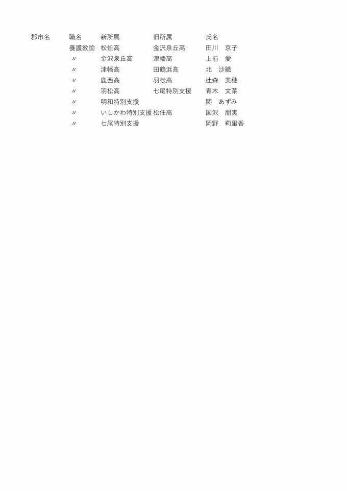 教職員人事異動2026石川県 「あの先生はどこに?」全名簿掲載・令和8年度「小学校・中学校・高校・特別支援学校 北陸放送 2026年3月24日(火) 18:32 国内 【県立高校・特別支援学校 養護教諭】