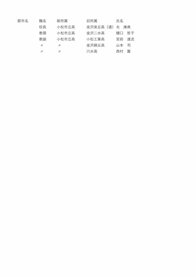 教職員人事異動2026石川県 「あの先生はどこに?」全名簿掲載・令和8年度「小学校・中学校・高校・特別支援学校