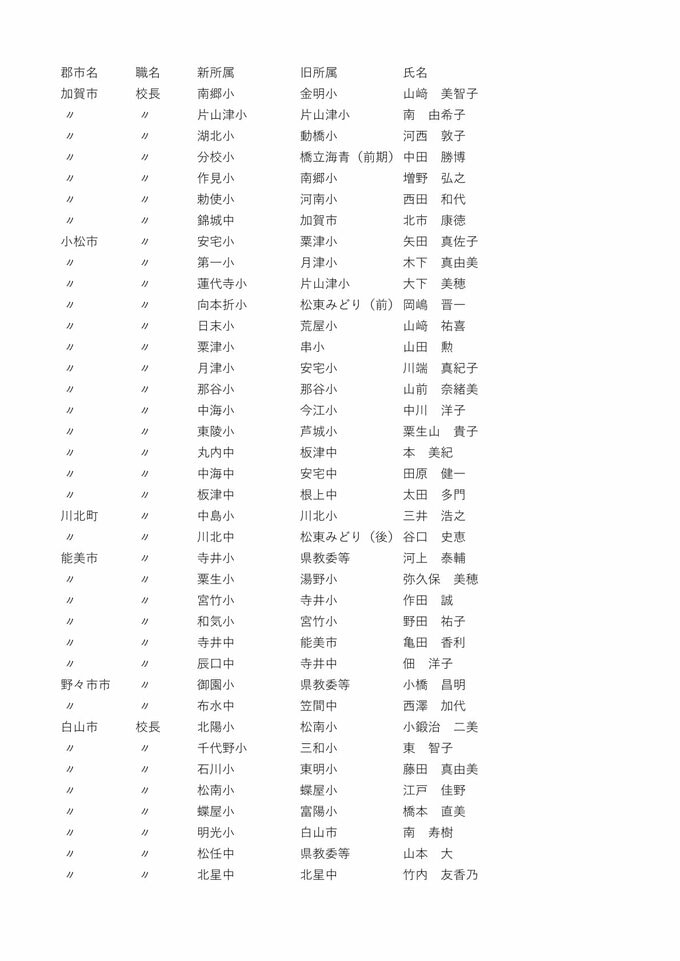 教職員人事異動2026石川県 「あの先生はどこに?」全名簿掲載・令和8年度「小学校・中学校・高校・特別支援学校
