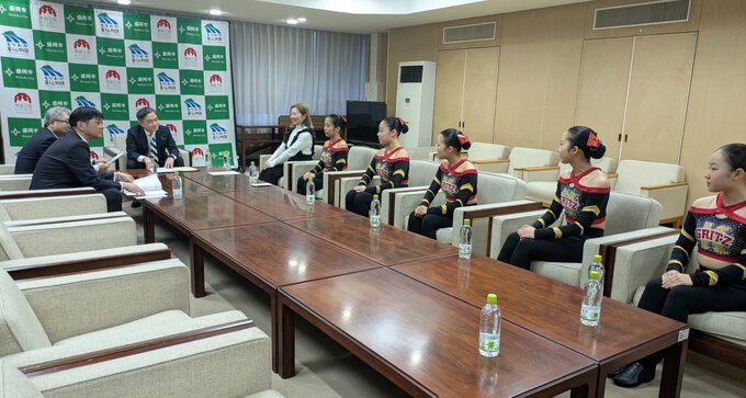 23日は「盛岡チアダンスクラブ煌」の八田友里代表と菅野葉香キャプテンら選手7人が盛岡市役所を訪れました。