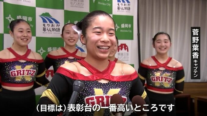 30日に千葉県で開催される全国大会に出場する盛岡市のチアダンスクラブが市役所を訪れ、大会での活躍を誓いました。