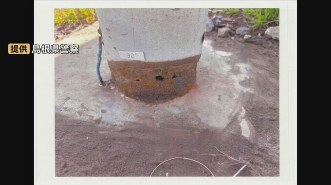 その中で周布大橋東詰交差点の信号柱は、委託された業者が超音波検査をするために柱のサビを落としたところ、地面から10センチ程度の高さの場所に亀裂が見つかったということです。