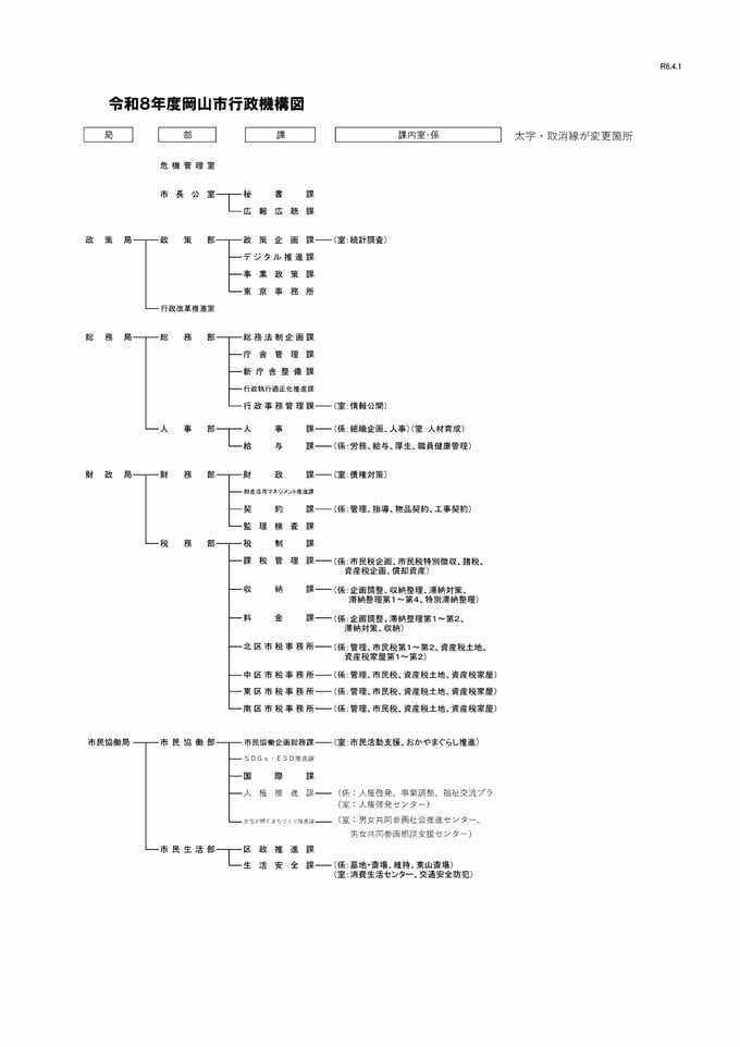 岡山市職員人事異動速報(2026年4月1日付)「“わくわくする”桃太郎のまち岡山」の実現に向け【名簿一覧掲載・検索】 RSK山陽放送 2026年3月24日(火) 11:41 国内 行政機構図 名簿などを画像一覧でみる