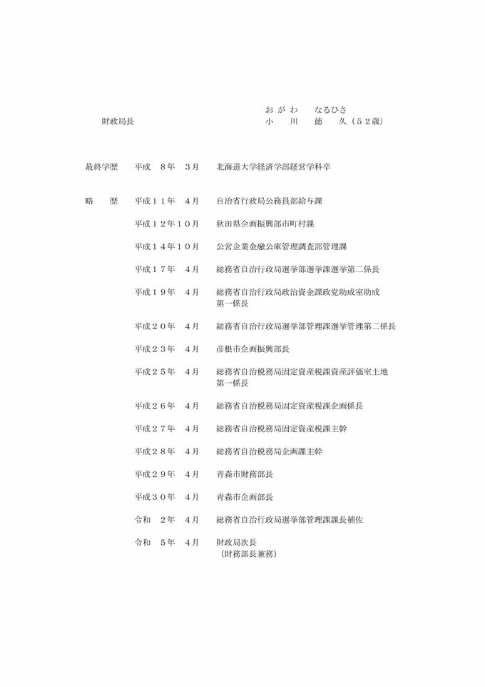 岡山市職員人事異動速報(2026年4月1日付)「“わくわくする”桃太郎のまち岡山」の実現に向け【名簿一覧掲載・検索】 RSK山陽放送 2026年3月24日(火) 11:41 国内 経歴 小川 徳久 氏 名簿などを画像一覧でみる