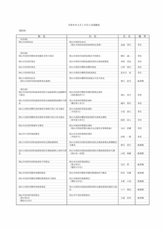 岡山市職員人事異動速報(2026年4月1日付)「“わくわくする”桃太郎のまち岡山」の実現に向け【名簿一覧掲載・検索】 RSK山陽放送 2026年3月24日(火) 11:41 国内 続き 名簿などを画像一覧でみる