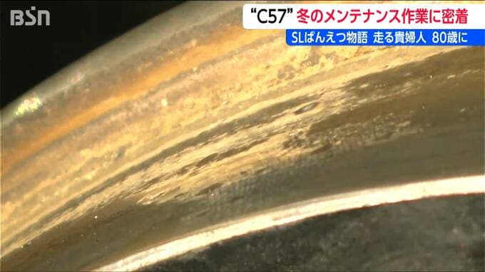 毎年冬場に集中的なメンテナンスを行っていますが、今回の整備では、ある問題が見つかりました。車体の後方にあり運転台や釜を支える車輪「従輪」で傷が見つかったのです。