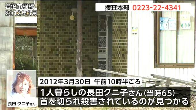 JR岩沼駅前では24日朝、岩沼署の署員ら14人がチラシを配るなどして情報提供を呼びかけました。この事件は2012年3月30日午前10時半頃、岩沼市梶橋の住宅でこの家に1人で住む長田クニ子さん当時65歳が、首を刃物のようなもので切られ殺害されているのが見つかったものです。