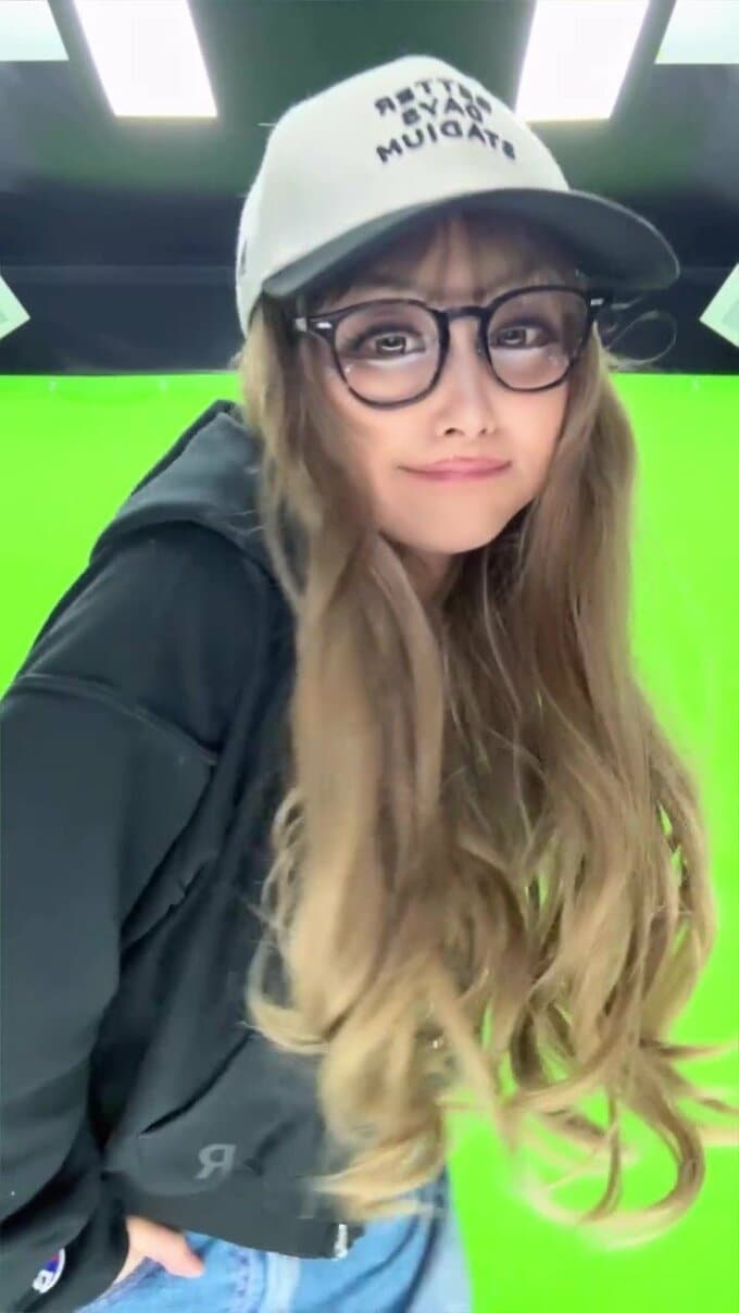 長くウェーブのかかった金髪のへアスタイルは、黒縁の太めのフレームのメガネと組み合わさることで、平成ギャル時代を思わせる雰囲気を演出。鈴木さんは、「髪の毛はプリシラのウィッグを付けてます!」と明かしています。