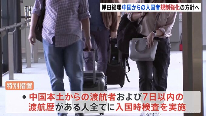 岸田総理は、新型コロナウイルスの感染が急拡大している中国からの入国規制を強化し、入国時に検査を行う方針であることを明らかにしました。岸田総理は先ほど、新型コロナの感染が急拡大する中国からの入国者に対…