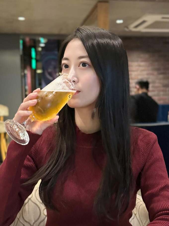 怜さんが投稿したのは、グラスでビールを呷る恵さんの1ショット写真。続いて、恵さんが鍋をつついたり、厚切りトンカツのお皿を掲げたりする、食欲満点の写真を投稿。