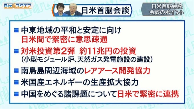 「レアアース関連のサプライチェーン強化などは、もともと中国への対抗で今回の会談でのメインテーマになるはずだった。中国と向き合う上でレアアースの問題はアメリカ最大の弱点の一つ。中国依存度を下げる取り組みは日本がかなり先行しているので、日本と協力体制を作れるというのはアメリカ政府にとっても大きな成果だと捉えられている」