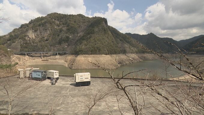 利用できるダム底の水は、約1か月分。ダムの上流部には、緊急取水に必要な発電機などが置かれ、準備が進められていました。