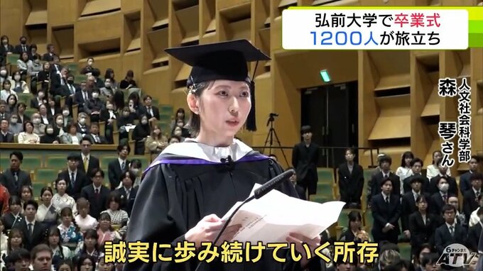 弘前大学で卒業式 1200人余りの卒業生たちがそれぞれの思いを胸に新たな一歩を踏み出す「次の場所でも活躍できるようにがんばっていきたい」 青森県弘前市 青森テレビ 2026年3月24日(火) 16:25 国内 【写真を見る】弘前大学の卒業式の様子 ※「NEWS DIG」のアプリやサイト以外でご覧の方は、関連リンクから画像をご確認いただけます。