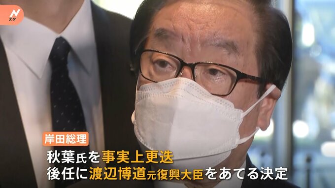 岸田総理は、政治とカネをめぐる問題が相次いだ秋葉復興大臣を事実上更迭し、後任に渡辺元復興大臣を起用する人事を決めました。2か月で4人の閣僚が交代する異例の事態となっています。岸田総理「大臣が辞任したと…
