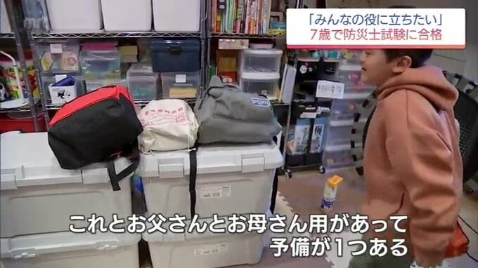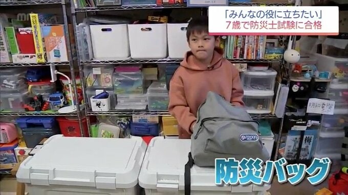 高橋くんが自宅に置いている防災バッグを見せてもらいました。