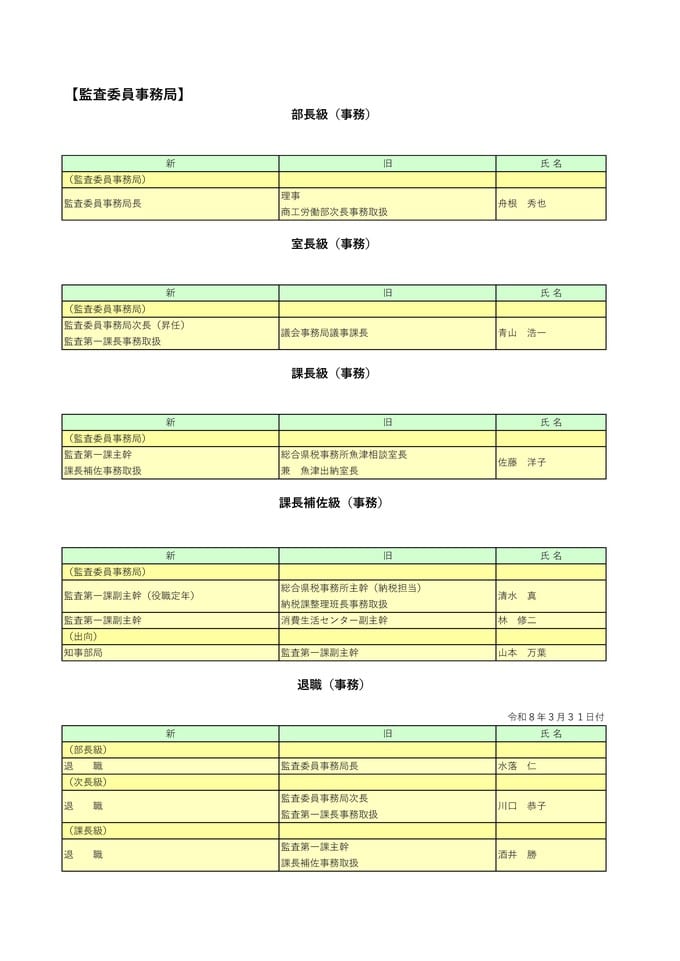 【富山県職員】人事異動 2026年(令和8年)4月 【異動一覧リスト】女性管理職106人、管理職の22.7%占める チューリップテレビ 2026年3月24日(火) 17:35 国内 暮らし・マネー 監査委員事務局 富山県職員2026