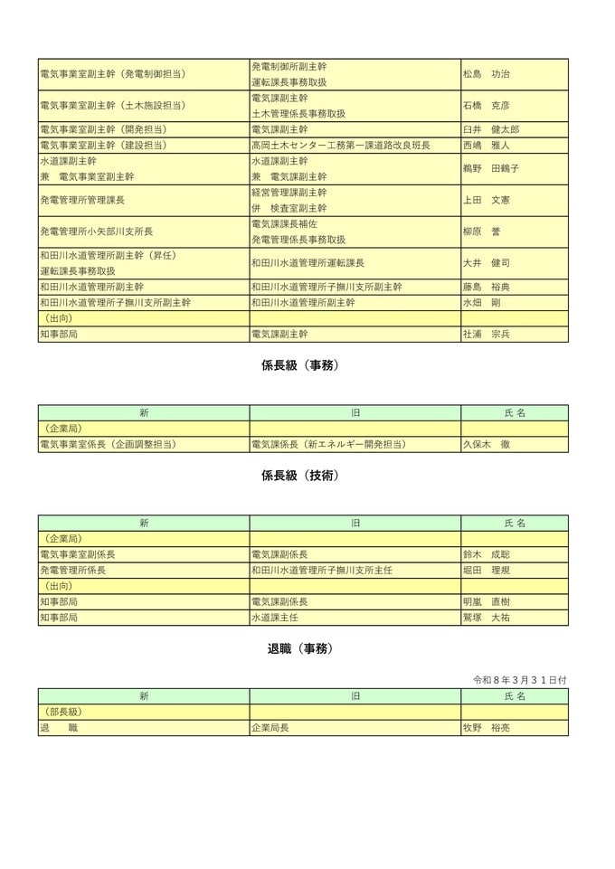 【富山県職員】人事異動 2026年(令和8年)4月 【異動一覧リスト】女性管理職106人、管理職の22.7%占める チューリップテレビ 2026年3月24日(火) 17:35 国内 暮らし・マネー 企業局 富山県職員2026