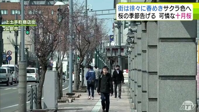 春に向けて「わくわく、ドキドキ感がたまらない」青森県弘前市の商店街で街路樹の「十月桜」が一足早く咲き始め 春めく街並み 青森テレビ 2026年3月25日(水) 06:00 国内 【写真を見る】「十月桜」春めいてくる弘前市上土手町 ※「NEWS DIG」のアプリやサイト以外でご覧の方は、関連リンクから画像をご確認いただけます。