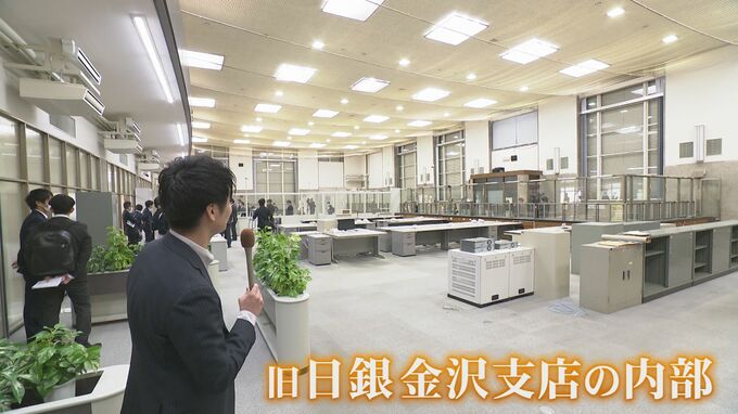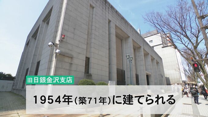 1954年に建てられた旧日銀金沢支店は、鉄筋コンクリート造りの地下1階、地上3階建てで、延床面積はおよそ4800平方メートルあります。